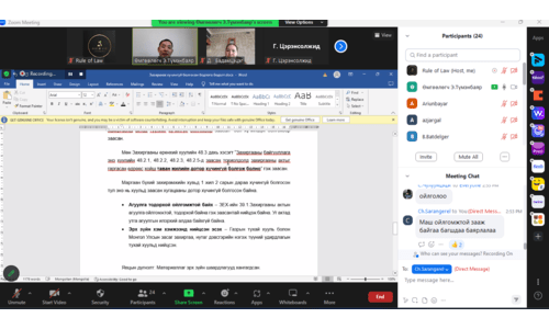- Тусгайлан боловсруулсан хөтөлбөрийн дагуу сар бүрээр тухайн салбар эрх зүйн лекц, дадлага хичээл нэгэн зэрэг орно.